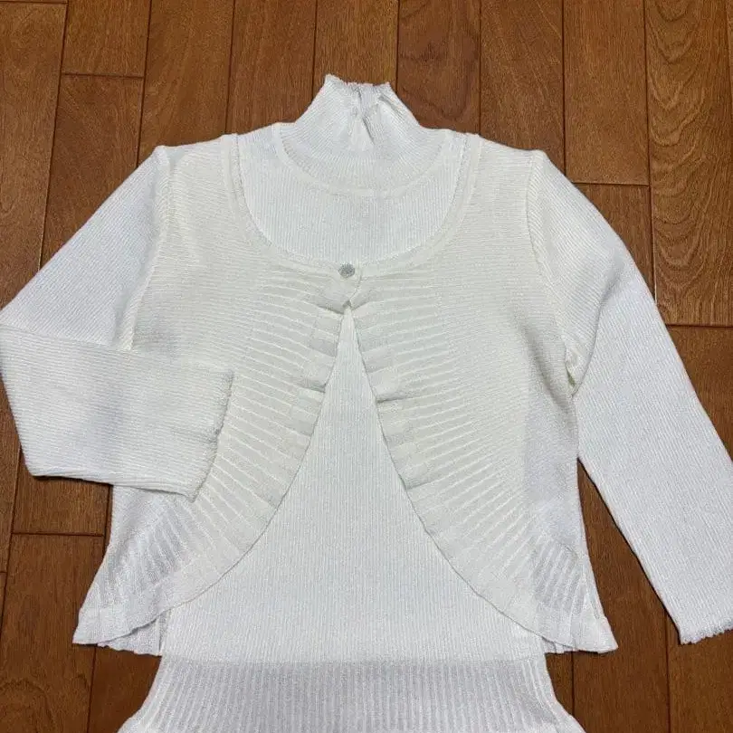 새상품 아쉬 비스 화이트 긴팔 터틀넥 가디건 앙상블