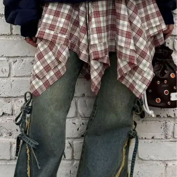 체크 언밸런스 밑단 미니 스커트 차오패닉