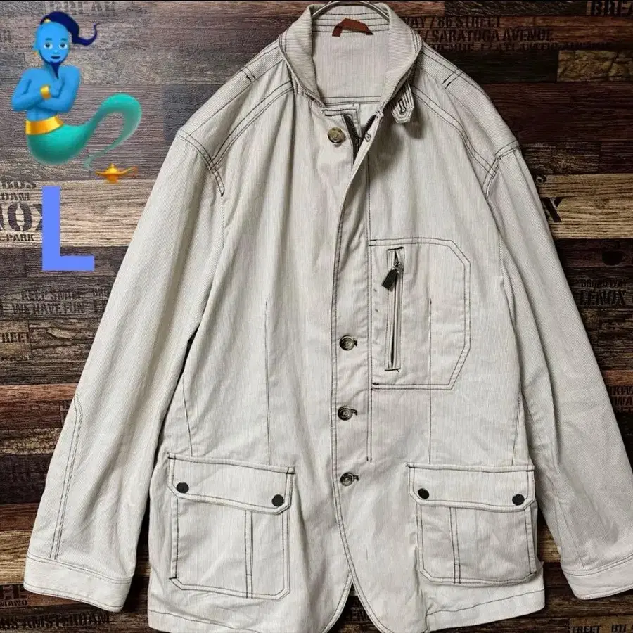 [ 개성파 구제 의류 ] 아이보리 스트라이프 패턴 커버올 코트 점퍼 L