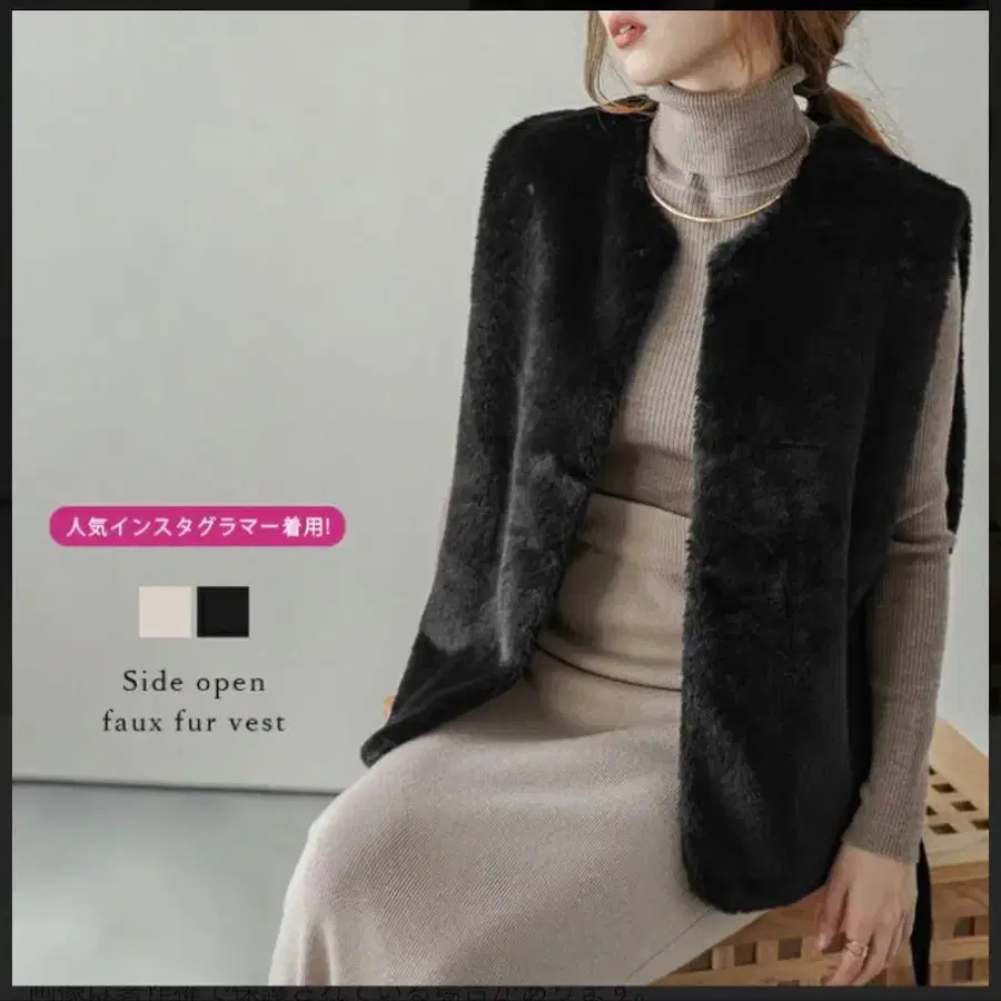 블랙 인조 모피 베스트 사이드 오픈