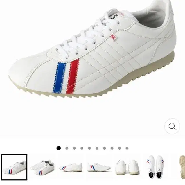 자동 번역되었어요. 원문보기화이트 어퍼에 레드와 블루 스트라이프가 특징인 스니커즈.