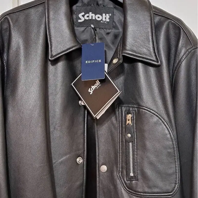 Schott 에디피스 별주 블랙 가죽 셔츠 자켓