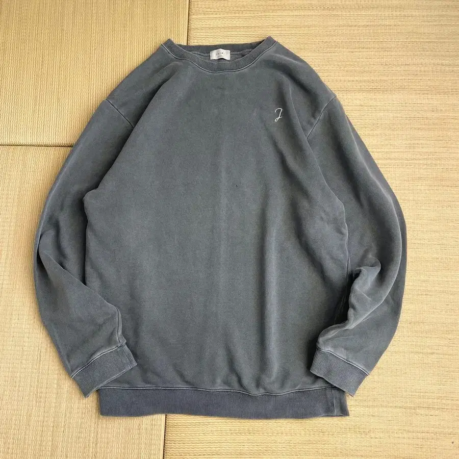 juemi 주에미 피그먼트 차콜 원포인트 자수 맨투맨