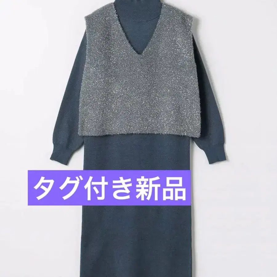 심플한 니트 원피스와 은은한 반짝임의 베스트 대비가 고급스러운 인상을 줍니다.