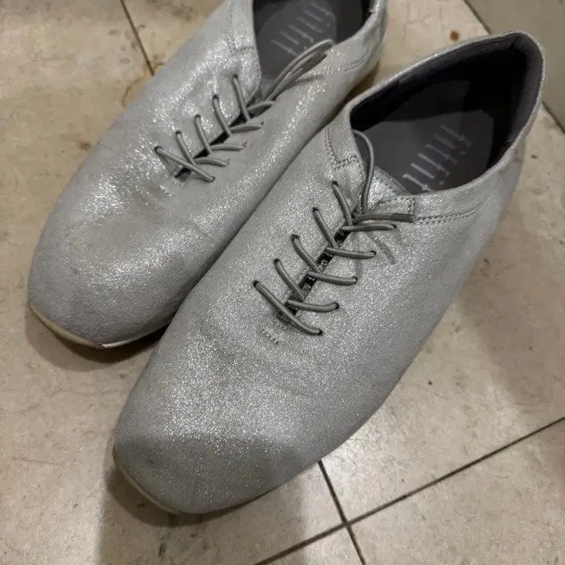 발수 소프트 플랫 레이스업 슈즈 ( 실버 )