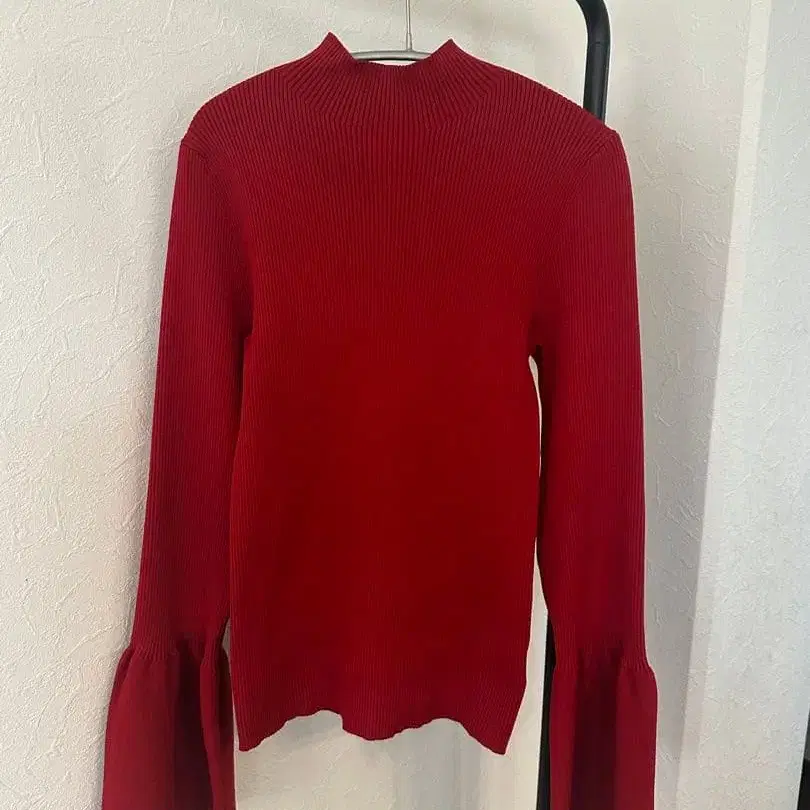 라운지 드레스 빨간색 볼륨 소매 리브 니트