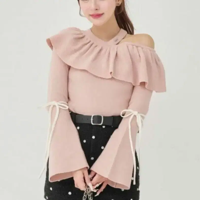 택 포함 새상품 다리치 벨 슬리브 프릴 니트탑 핑크 Darich
