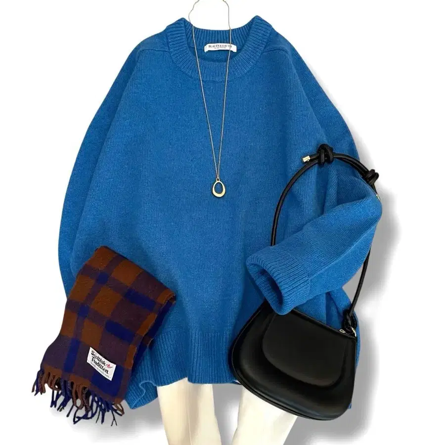 새상품급 뷰티앤유스 니트 스웨터 캐시미어 울 M 블루