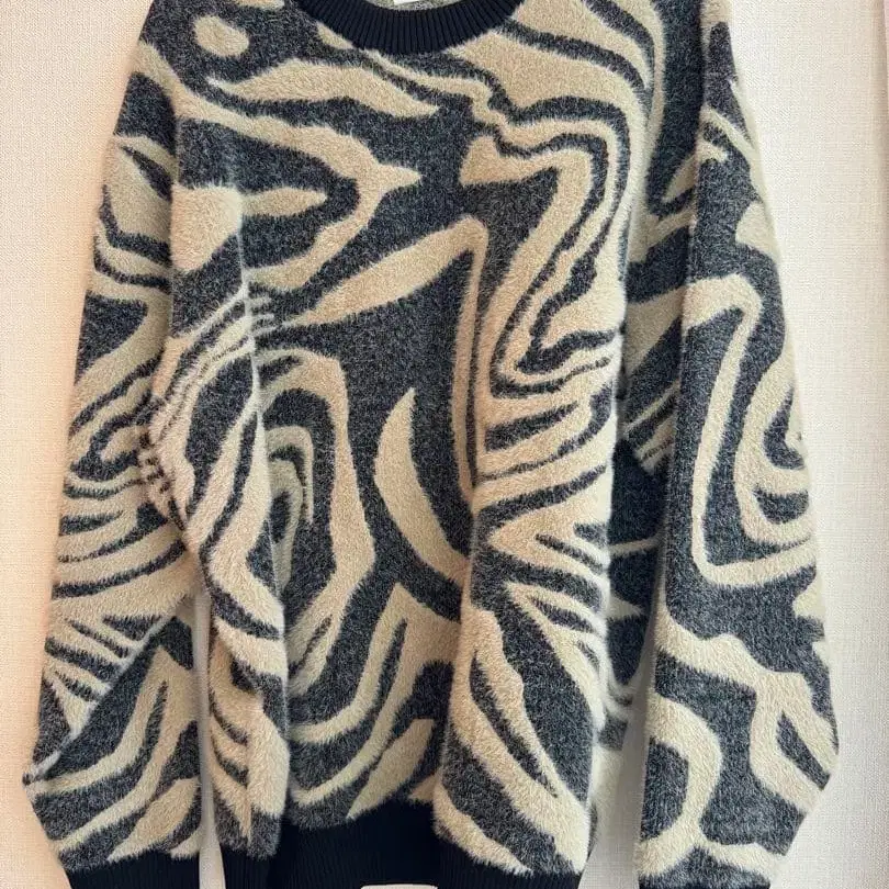 SLY 스라이 제브라 마블 패턴 샤기 니트 블랙 브라운