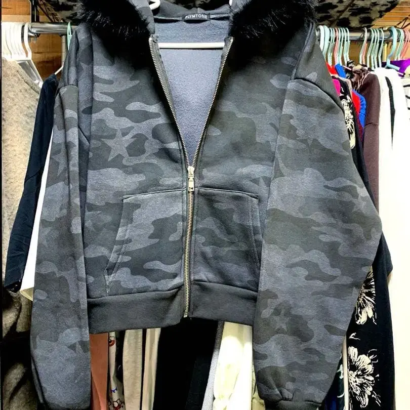 카모 패턴 zip 후드티. 후디. 블랙 퍼 포함. 새상품. 블랙 계열.