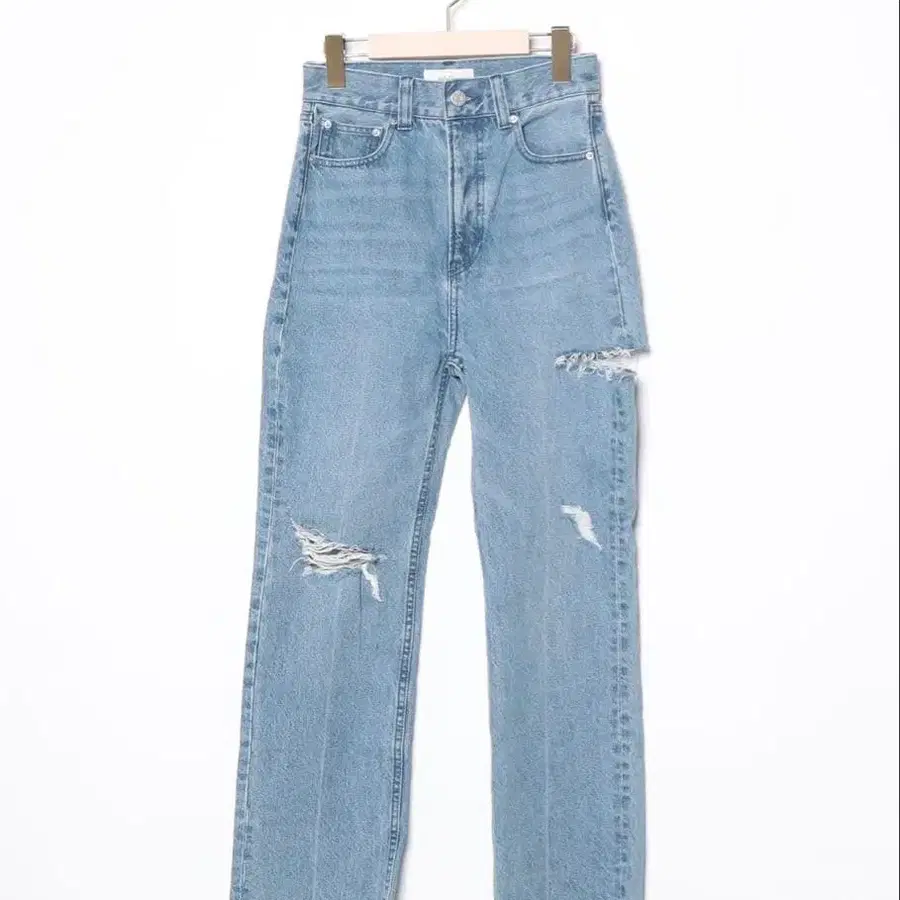 미라 오웬 라이트 블루 스트레이트 데님 데미지 가공