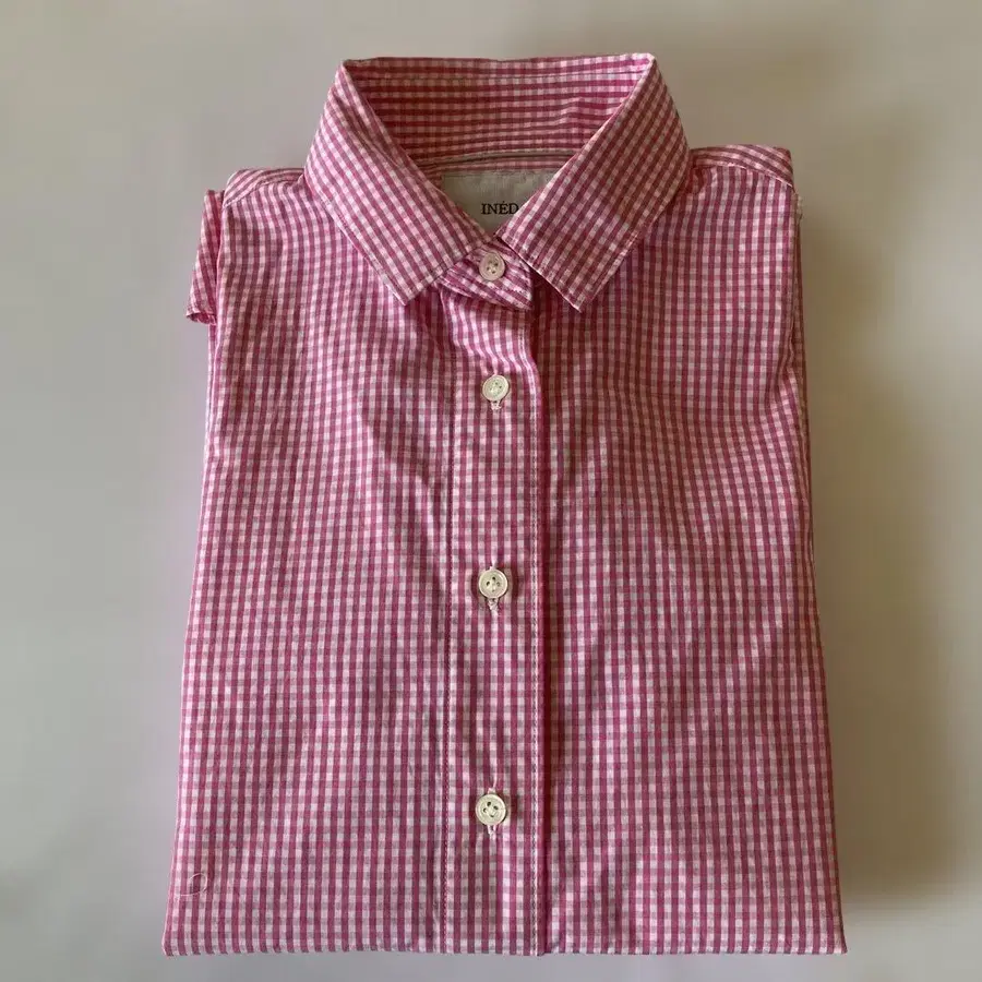 INED 핑크 깅엄 체크 긴팔 셔츠 면 100%