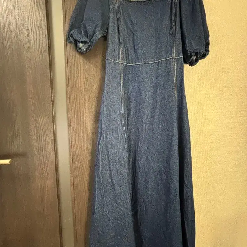 ZARA 데님 퍼프 슬리브 롱 드레스
