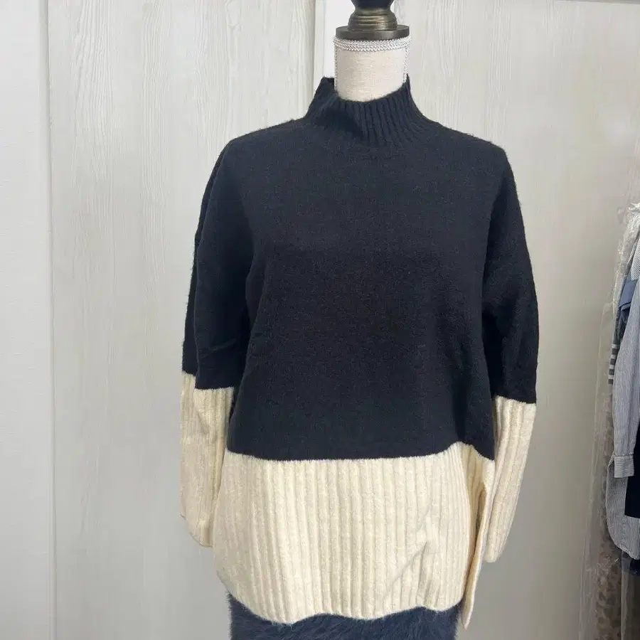 터틀넥 니트 스웨터 블랙과 오프화이트 [ RADIATE ]