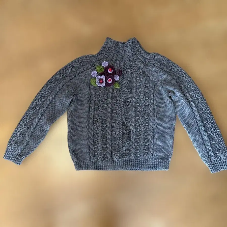 TOMATSU 꽃 자수 포함 그레이 케이블 짜임 스웨터