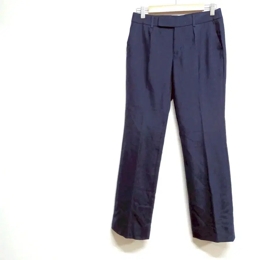 네이비 스트레이트 레그 슬랙스, 센터 프레스가 있어 비즈니스 장면에 최적.