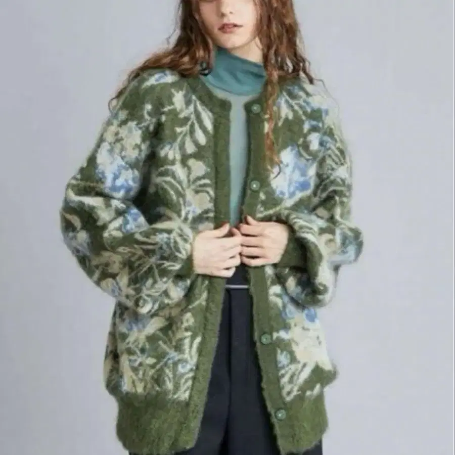 모헤어 혼방의 자카드 니트에 기모 가공을 하여 더욱 따뜻한 질감으로 완성했습니다. 적당한 두께감이 있지만, 가볍고 착용감이 좋은 소재입니다.
