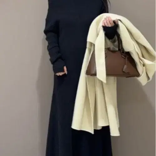 미라 워엔 오프숄더 블랙 니트 롱 원피스 1
