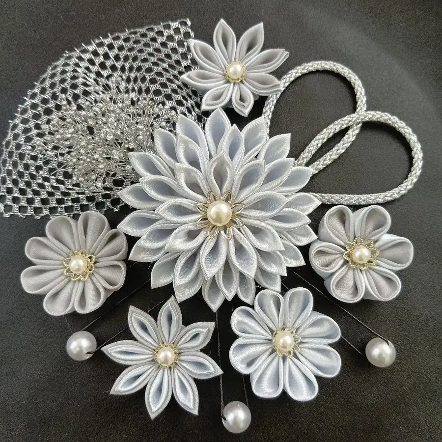 머리 장식 쓰미카미 세이진식 졸업식 결혼식 시치고산 백은 그레이