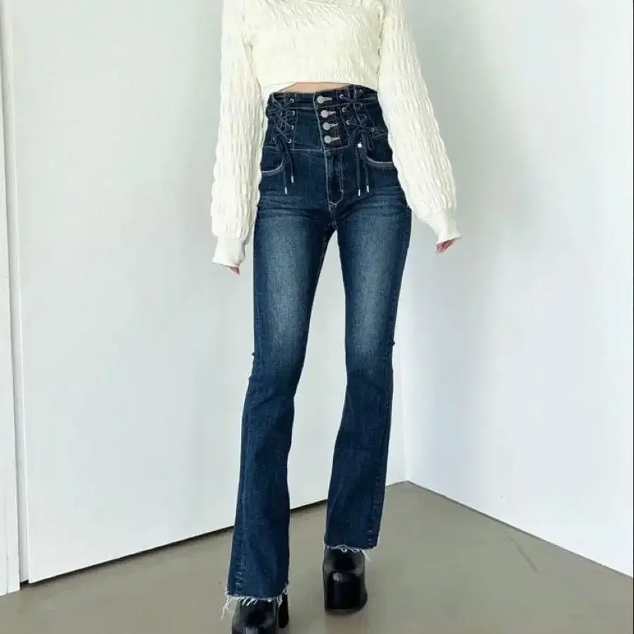 EMODA W 레이스업 하이웨스트 플레어 팬츠 XS 에모다