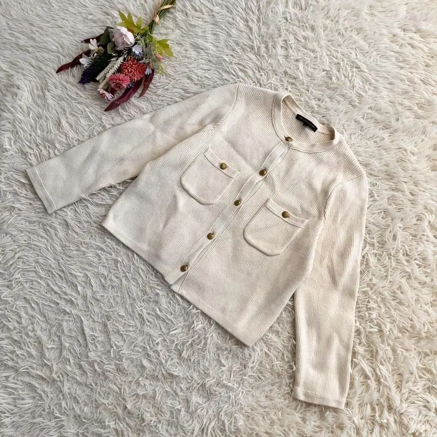• 리랜드트루 노카라 니트 자켓 펄 버튼 크림색 화이트
