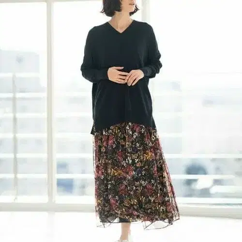 어른스러운 멀티 컬러이기 때문에 심플한 상의를 매치해도 화려하고 여성스러운 코디네이트가 완성됩니다.