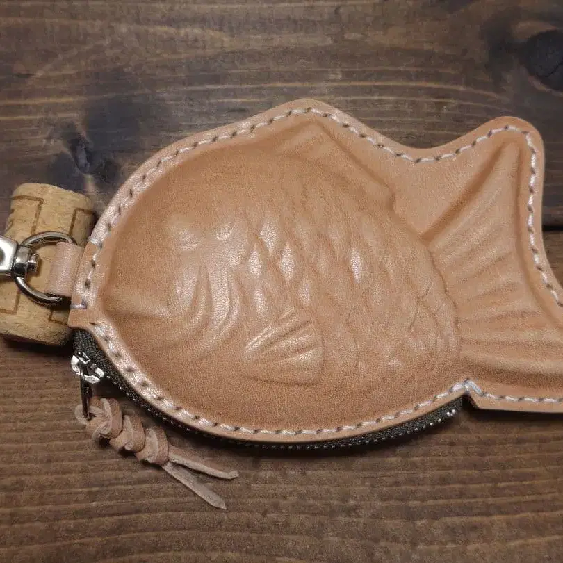 자동 번역되었어요. 원문보기천연 가죽 도치기 가죽 사용, 금속 고리 부착된 붕어빵 파우치