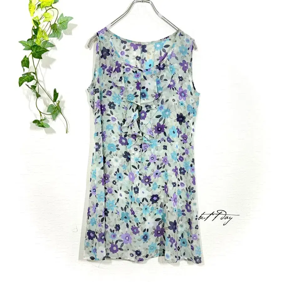 콤므앙팜 꽃무늬 시어 튜닉 (L) 슬리브리스 샤보 페미닌