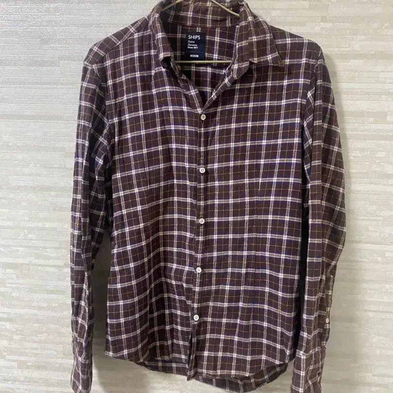 SHIPS 브라운 계열 체크 긴팔 셔츠 MEDIUM