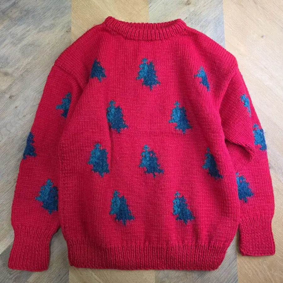 paulstuart 크리스마스 트리 패턴 빨간색 니트 스웨터 울 y58