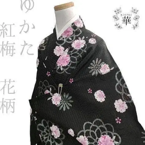 화려한 유카타 홍매화 꽃 블랙 캐주얼 여름 기모노 축제