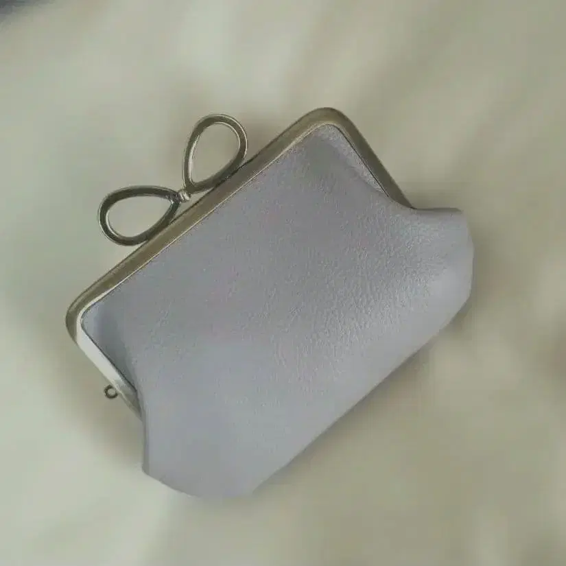 부녀 가마구치 지갑 (12cm) 그레이 퍼플 가죽 리본 금구 앤틱 골드