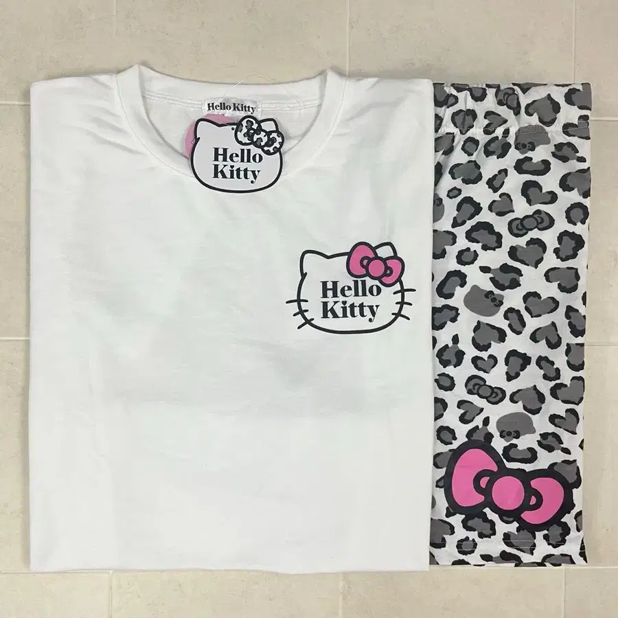 헬로키티 돈키 한정판 반팔 상하의 세트 룸웨어 레오파드 무늬 블랙 L