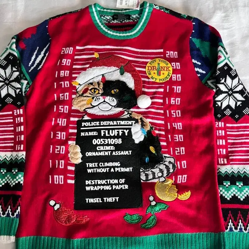 [택 포함 미사용] 크리스마스 고양이 자수 긴팔 니트 스웨터