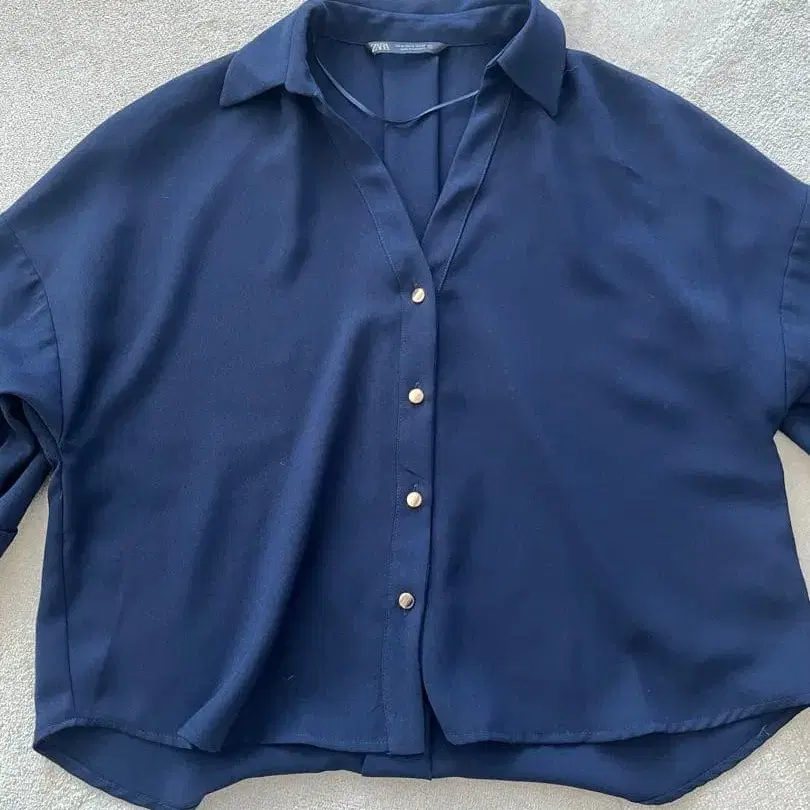 ZARA 네이비 버튼 달린 반소매 셔츠