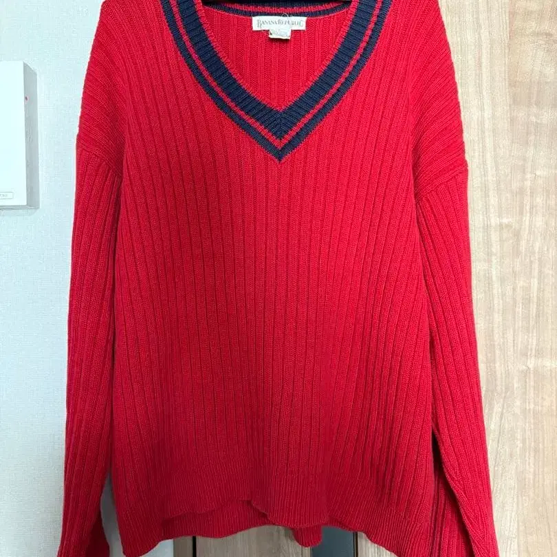 바나나 리퍼블릭 리브 V넥 스웨터 L 레드 90s