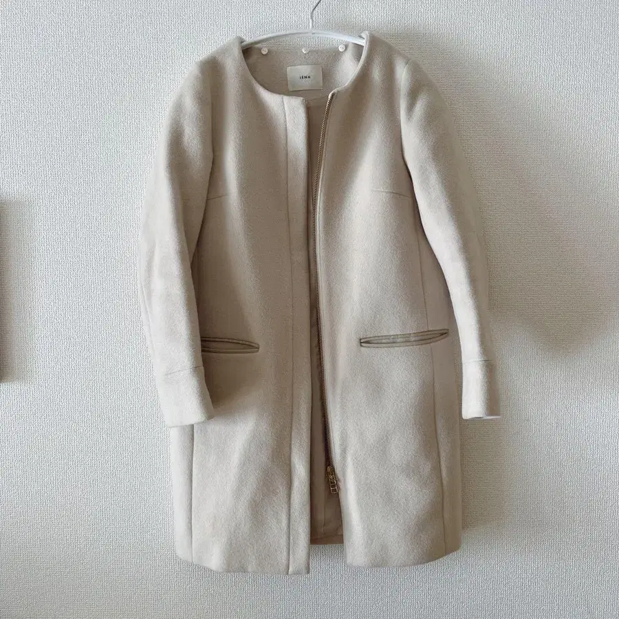 IENA 이에나 울 노카라 코트 베이지 더블 지퍼 S