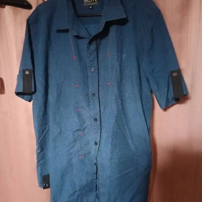 맥도날드 체크 무늬 반팔 셔츠 크루 셔츠