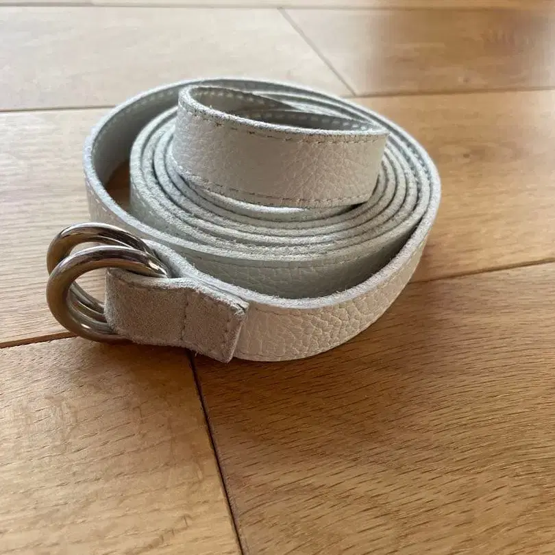 Edition 화이트 가죽 더블 링 벨트