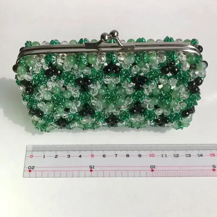 [ 핸드메이드 ] 비즈 가마구치 지갑 그린과 블랙