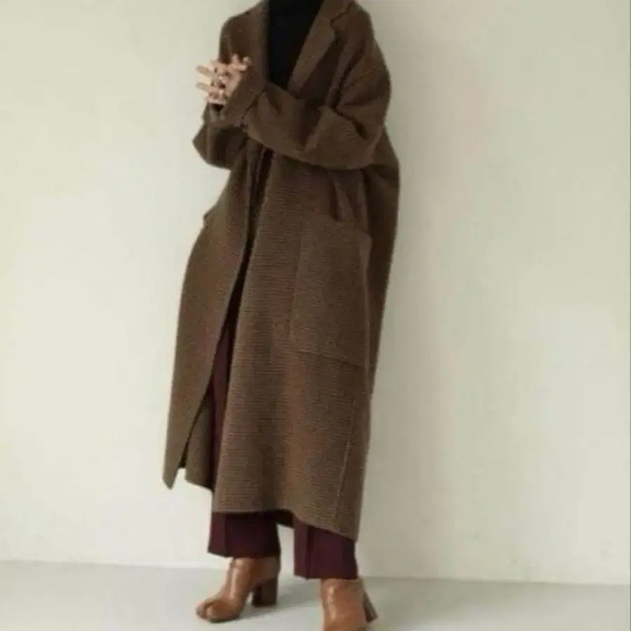 울 체크 무늬 롱 코트