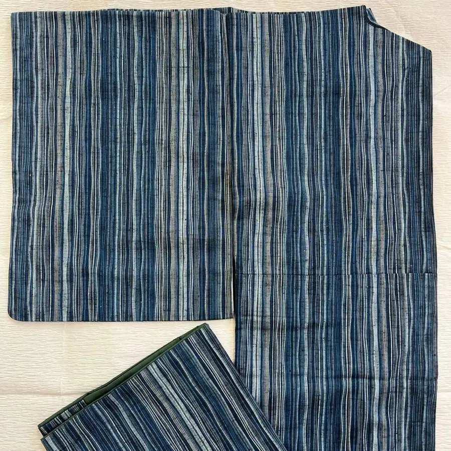 순수 실크 엇갈린 세로 줄무늬 기모노