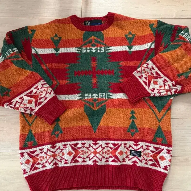 다이나믹한 네이티브 패턴이 인상적인 크루넥 니트. 자카드 편직에 의한 적당한 두께감과, 가슴 너비, 어깨 너비에 여유를 준 실루엣으로 완성하여, 맨투맨 같은 코디를 즐길 수 있는 아이템. 이너로 코디에 악센트를 더해도 재미있습니다. 밑단의 브랜드 네임이 적당히 존재감을 드러냅니다.