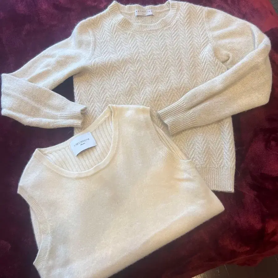 에스트네이션 화이트 니트 2점 캐시미어 100%