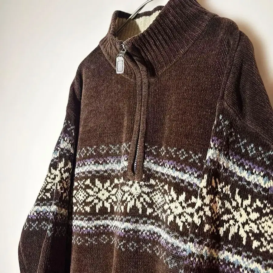 [ 개성파 ] 브라운 집업 니트 스웨터 코튼 혼방 노르딕 L