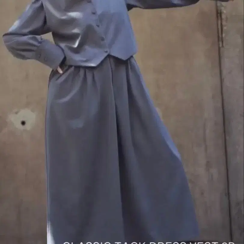 베스트는 등 부분에 절개가 있고 슬릿이 있어 원피스가 보이는 디자인입니다.