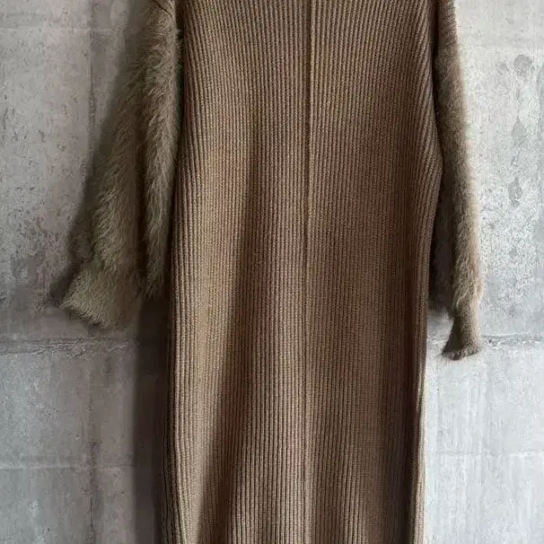 Discoat 리브 편직 퍼 부착 롱 원피스 F