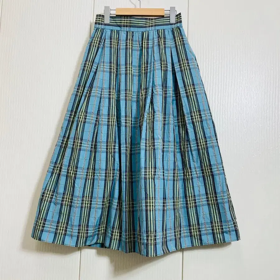 새상품급 그린 라벨 릴랙싱 메모리 체크 타프타 플레어 스커트