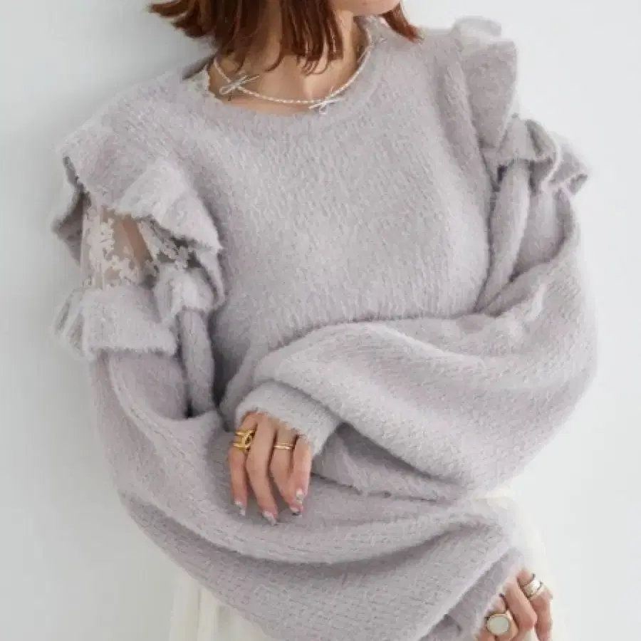 [ MAJESTIC LEGON ] Lady 프릴 샤기 니트