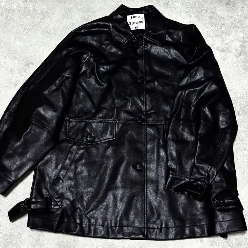 컨디션 최상 Fano Studios 인조 가죽 발칼라 코트 블랙 M